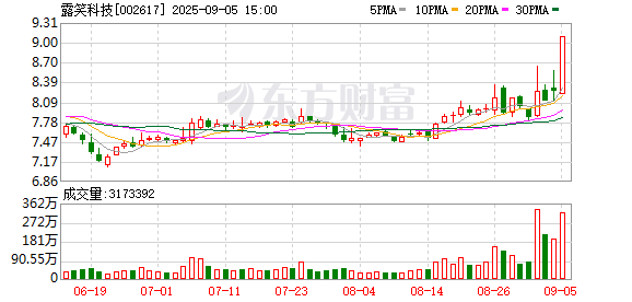 证券时报·数据宝统计显示,露笑科技今日收盘价为9.09元,上涨10.05%,日换手率为16.78%,成交额为27.97亿元,全天主力资金净流入8.32亿元,近5日该股累计上涨13.48%,近5日资金合计净流入11.85亿元。